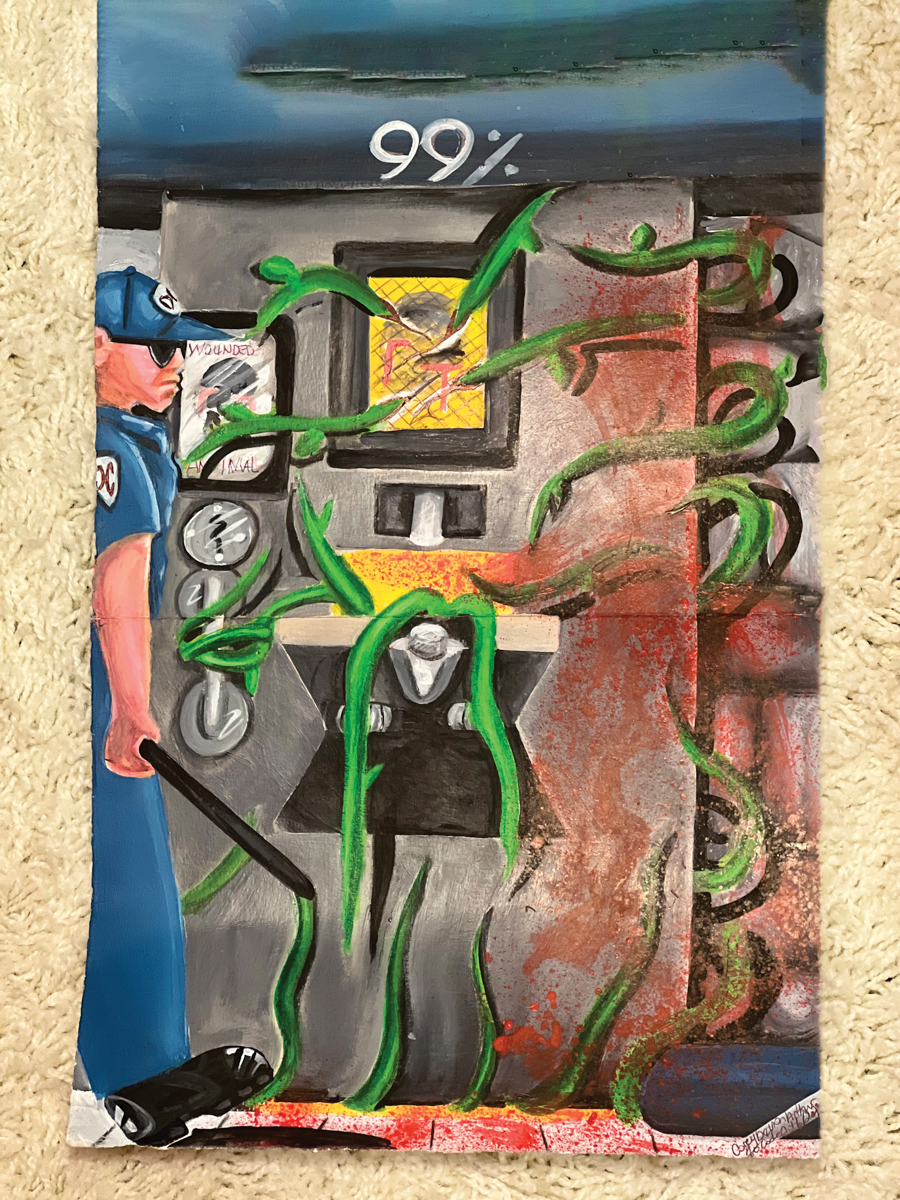 A huge thank you to currently incarcerated artist Corey Devon Arthur for creating this breathtaking series of paintings and illustrations for the Life In The Hole: Zine Compilation.